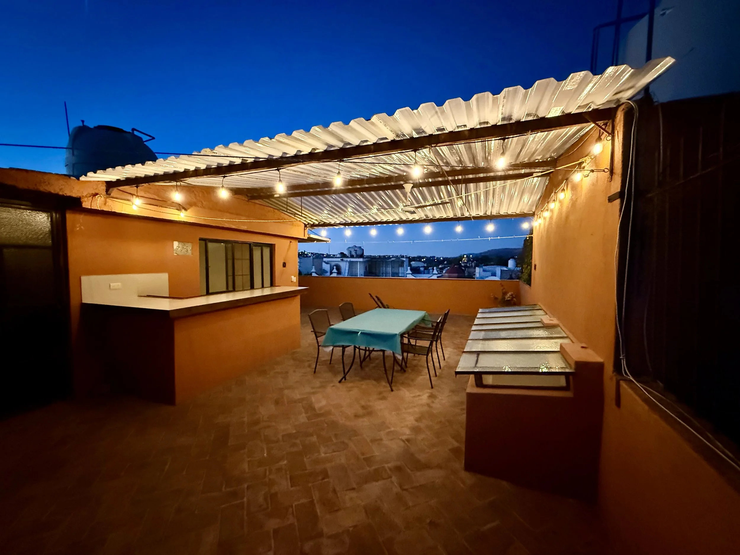 Nearly 2,000 sq. ft. of interior space opens onto a stunning 1,000 sq. ft. rooftop terraza with panoramic views of the Parroquia and San Miguel’s historic skyline — the perfect setting for morning coffee or sunset cocktails.